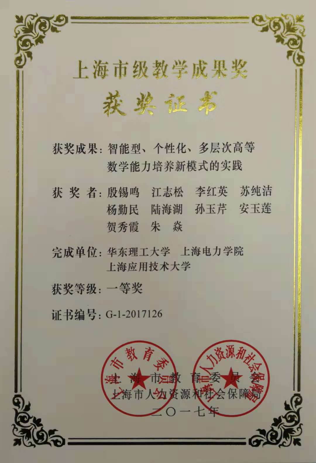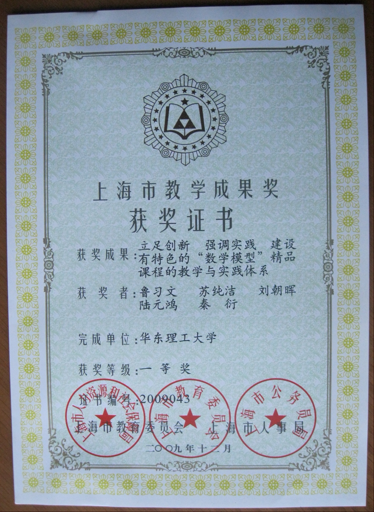 上海市教学成果一等奖
