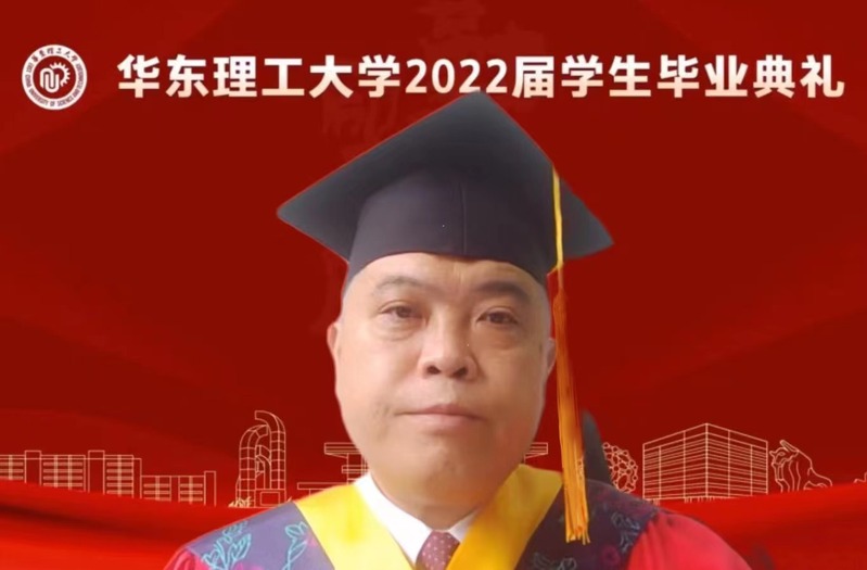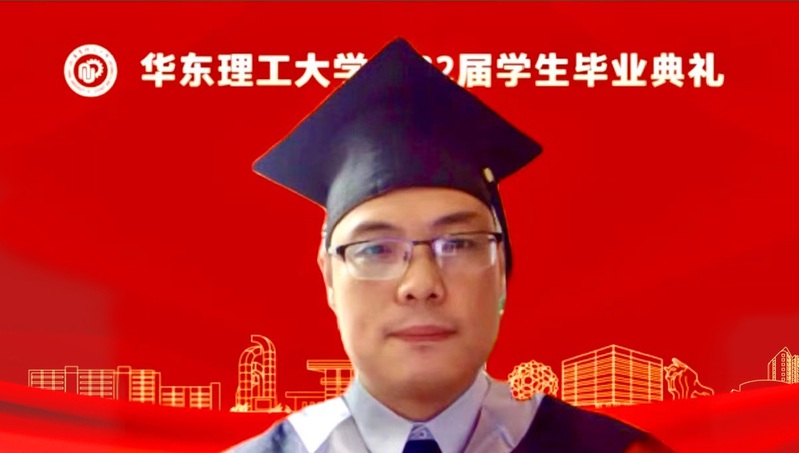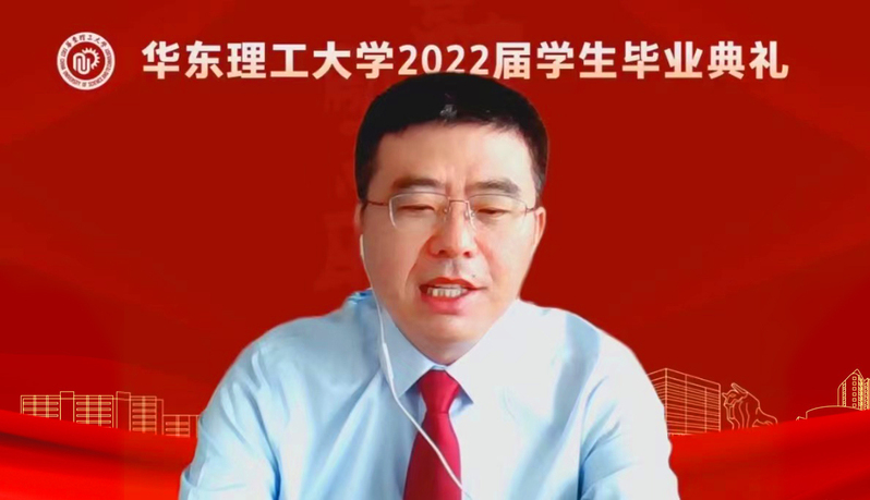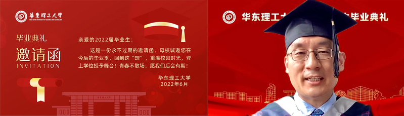 最后,鲍亮宣读了线下毕业典礼邀请函,诚邀2022届所有毕业生在今后的毕业季,回到母校,重温校园时光,登上学位授予舞台。今年是华理建校70周年,期待同学们常回家看看。