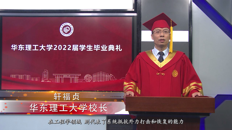 轩福贞校长代表学校、代表杜慧芳书记通过视频向2022届毕业生致以热烈的祝贺和最美好的祝福,并以“砥砺韧性,做笃定向未来的奔跑者”为题寄语广大毕业生。希望同学们砥砺坚忍不拔的意志、成就前行的信心之源;砥砺勇承重载的能力,成就前行的力量之源;砥砺刚柔并济的品质,成就前行的动力之源;砥砺耐久致远的精神,成就前行的活力之源。愿“海思路999号”“梅陇路130号”成为同学们青春记忆里最温暖的地标,带着母校的祝福和希望奔赴远方。