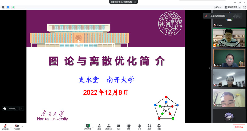 史永堂教授向学院师生介绍了图论学科的发展历程、经典问题、代表性人物,以及图论与离散优化在人工智能、数据科学等新兴领域的应用,并就图论的研究方向和应用前景与学院师生进行了交流与互动。
