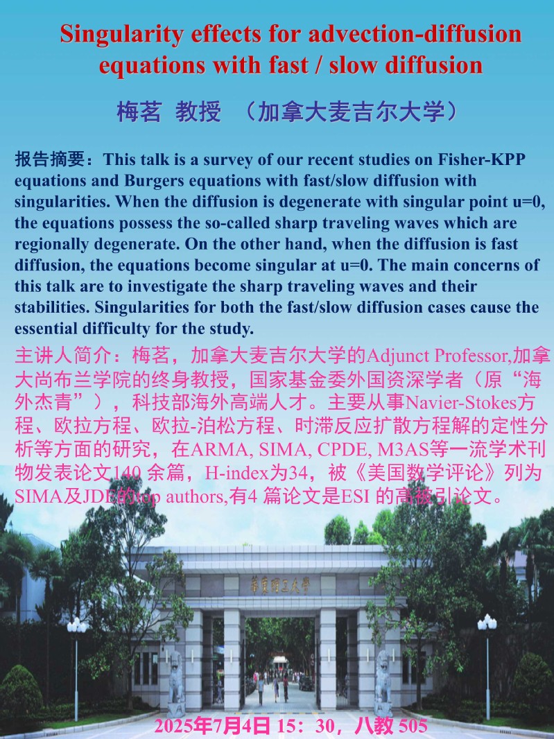 Singularity effects for advection-diffusion equations with fast/slow diffusion